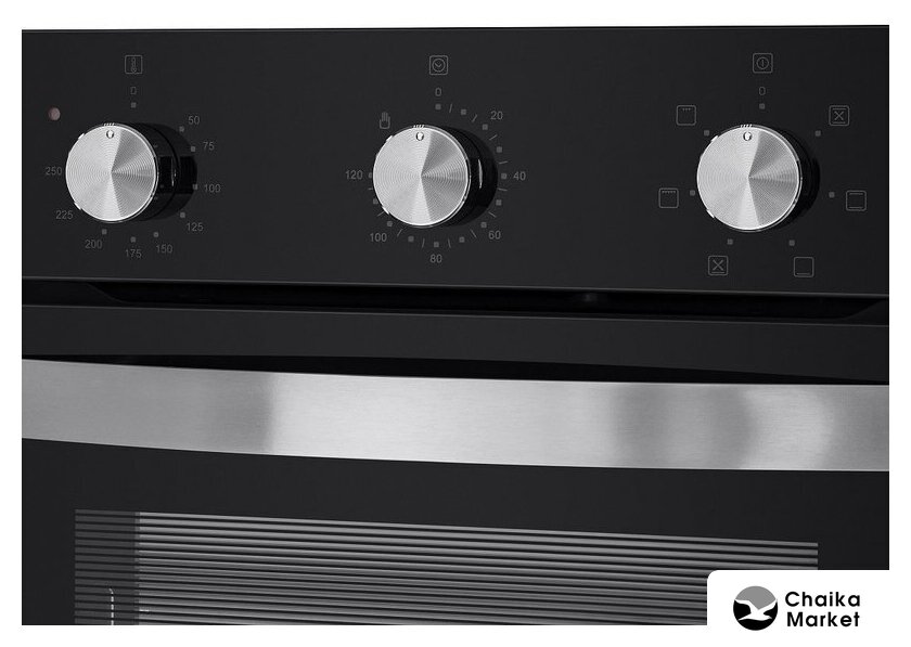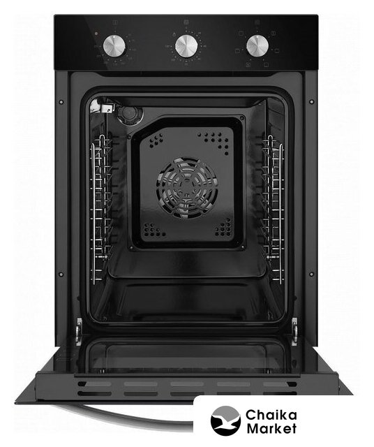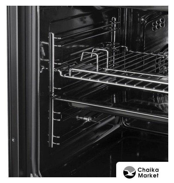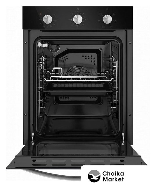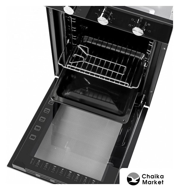 электрический с конвекцией, объем 52 л, утапливаемые переключатели, 6 режимов, очистка ручная, 2 стекла в дверце, направляющие рельефные