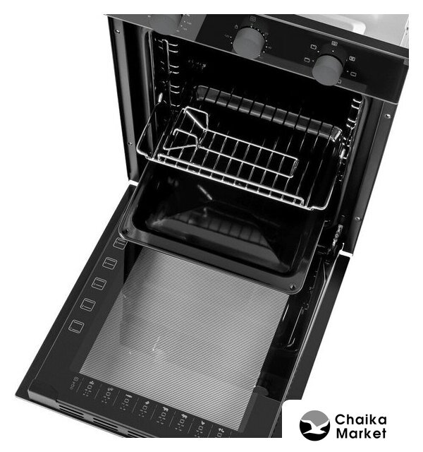 электрический с конвекцией, объем 64 л, 6 режимов, очистка ручная, 2 стекла в дверце, направляющие проволочные