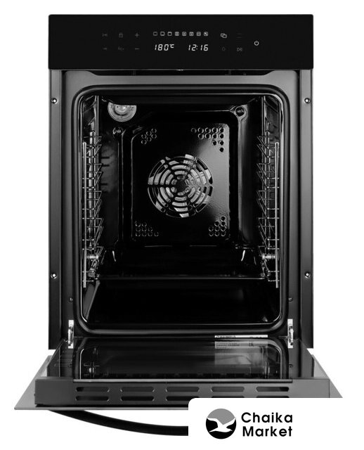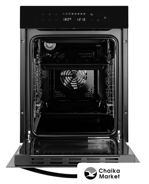 электрический с конвекцией, объем 60 л, утапливаемые переключатели, 6 режимов, очистка паровая, направляющие проволочные