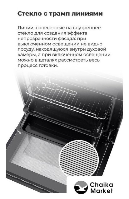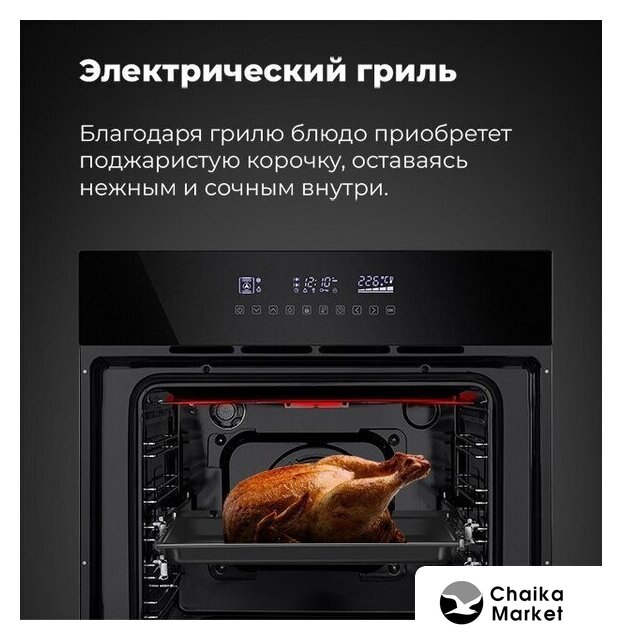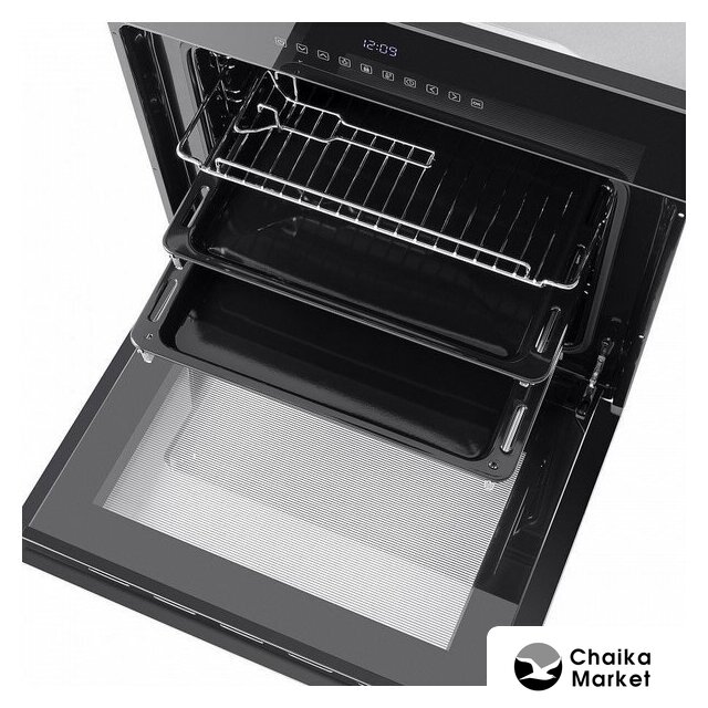 электрический с конвекцией, объем 76 л, 10 режимов, очистка ручная, 3 стекла в дверце, направляющие проволочные + телескопические (2 уровня)