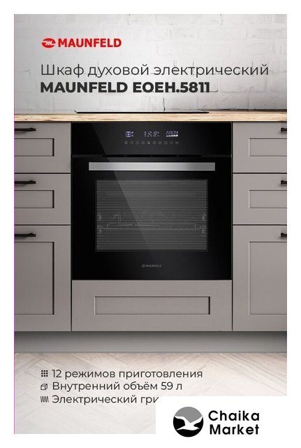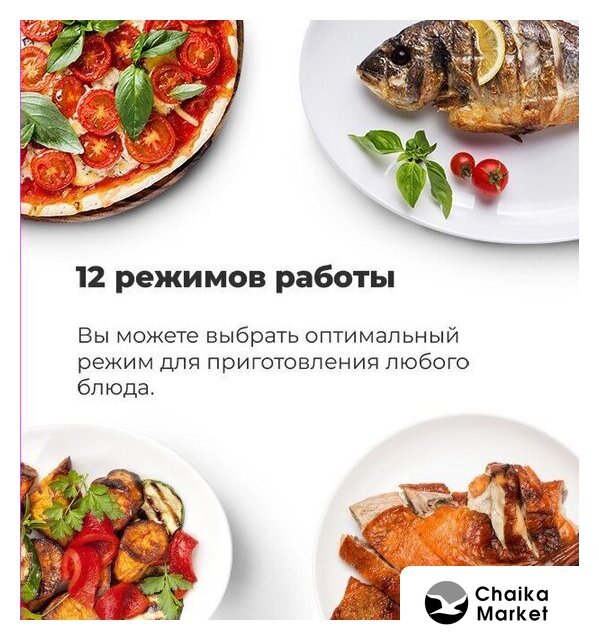 Режимы работы | нижний нагрев, двухсторонний нагрев, большой гриль, вентиляционный нагрев, гриль + конвекция, нижний нагрев + конвекция, нижний + вентиляционный нагрев, двухсторонний нагрев + конвекция, размораживание |