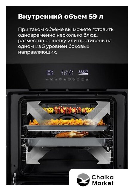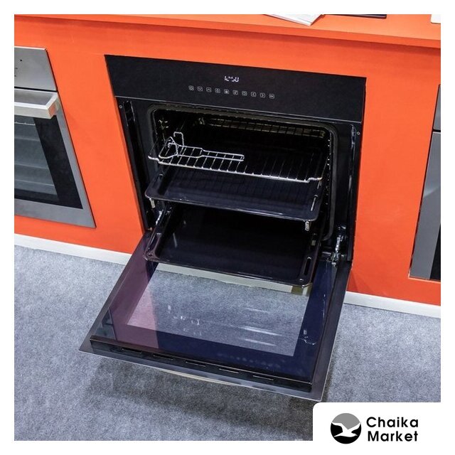 электрический с конвекцией, объем 71 л, утапливаемые переключатели, 9 режимов, очистка ручная, 2 стекла в дверце, направляющие проволочные + телескопические