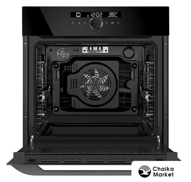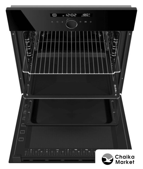 электрический с конвекцией, объем 77 л, утапливаемые переключатели, 11 режимов, очистка каталитическая + паровая, 2 стекла в дверце, направляющие проволочные