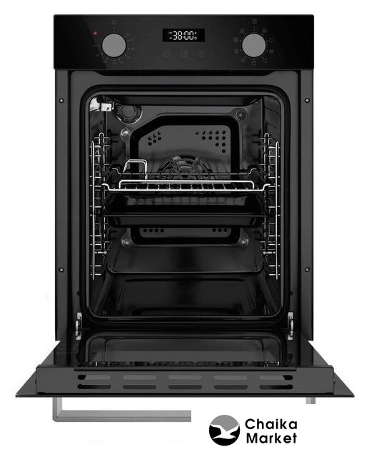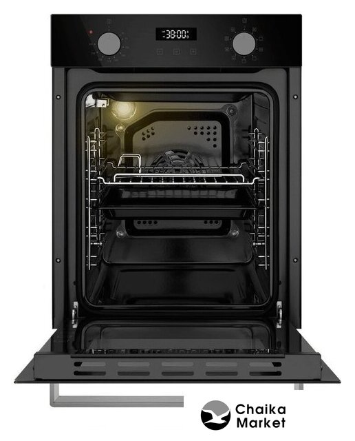 электрический с конвекцией, объем 51 л, 6 режимов, очистка ручная, 2 стекла в дверце, направляющие проволочные