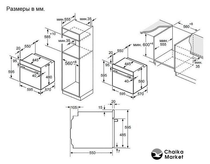 электрический с конвекцией, объем 60 л, 5 режимов, очистка паровая, направляющие проволочные