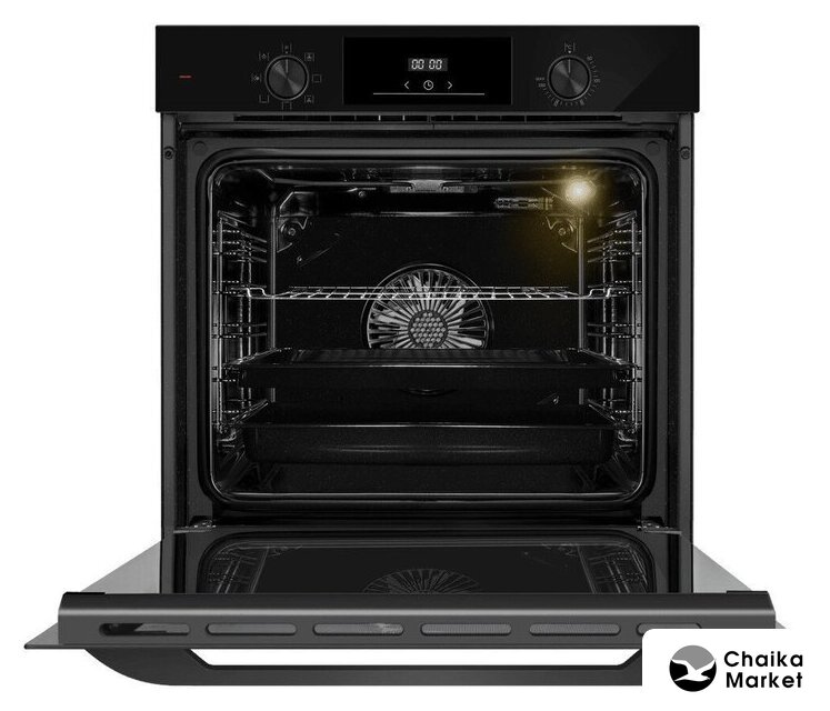 электрический с конвекцией, объем 66 л, утапливаемые переключатели, 8 режимов, очистка ручная, 3 стекла в дверце, направляющие проволочные