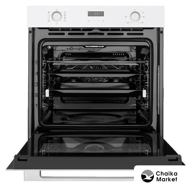 электрический с конвекцией, объем 66 л, утапливаемые переключатели, 7 режимов, очистка ручная, 2 стекла в дверце, направляющие проволочные + телескопические (1 уровень)