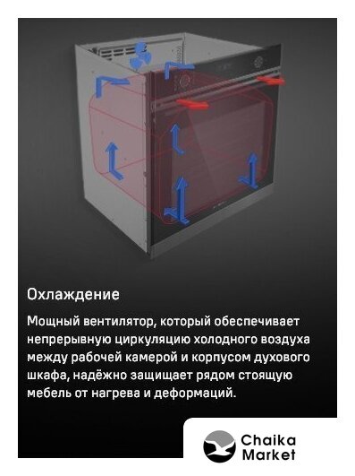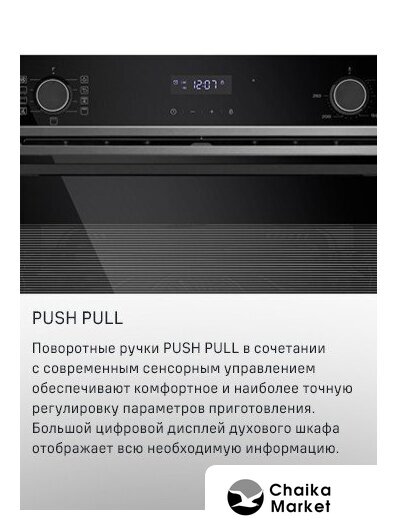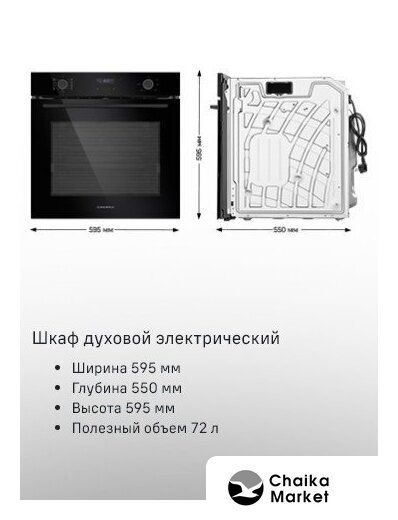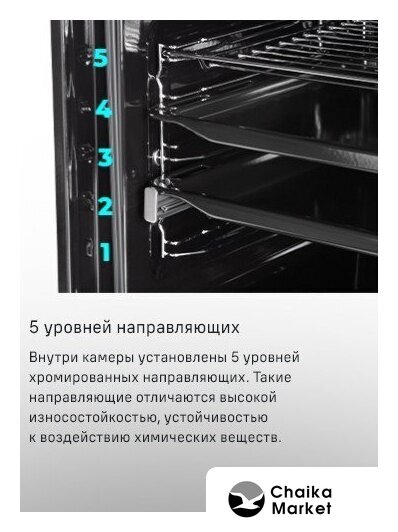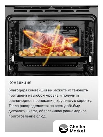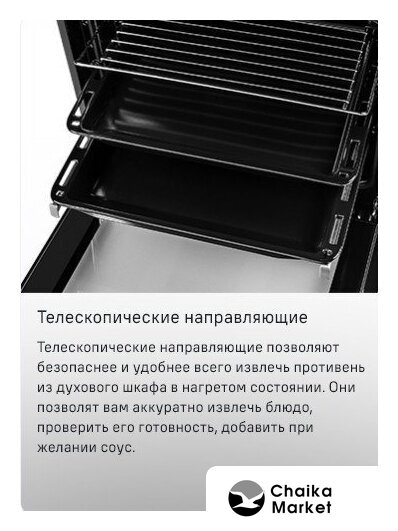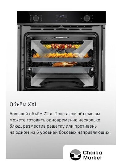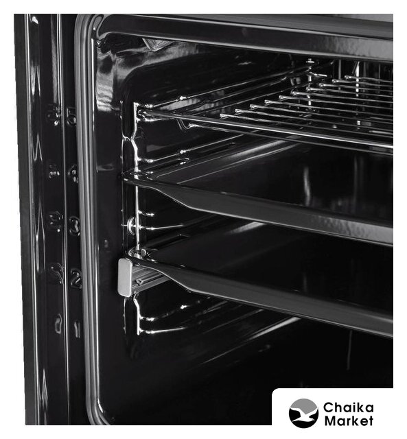 электрический с конвекцией, объем 76 л, 13 режимов, очистка паровая, 3 стекла в дверце, направляющие проволочные + телескопические (1 уровень)