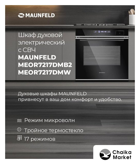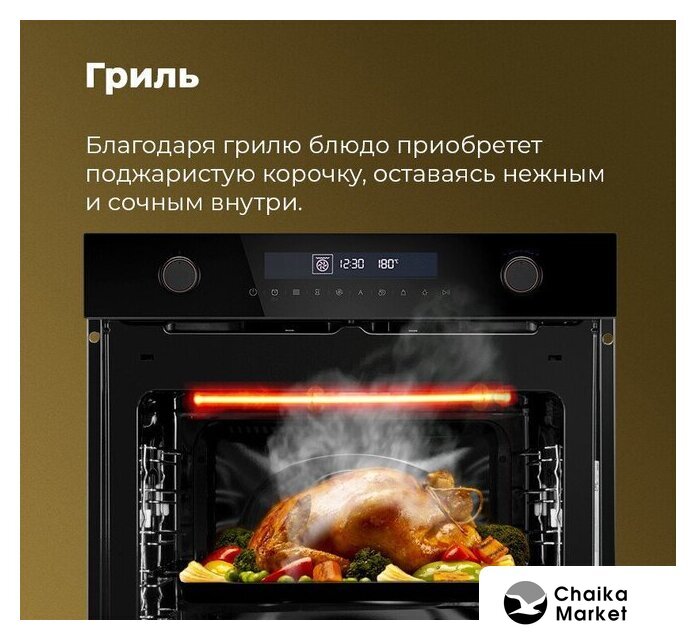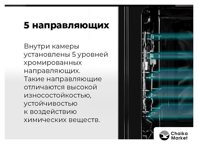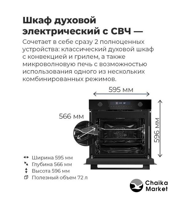 электрический с конвекцией, микроволны, приготовление на пару, объем 50 л, 11 режимов, автопрограммы, очистка паровая, 3 стекла в дверце, направляющие проволочные