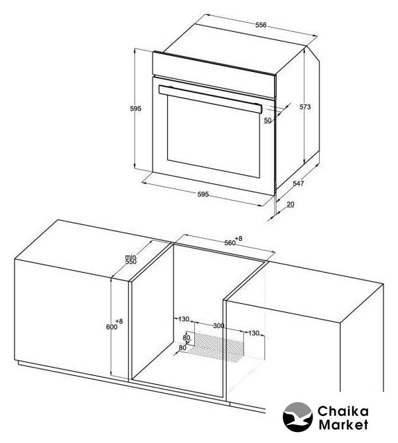электрический с конвекцией, объем 73 л, утапливаемые переключатели, 6 режимов, очистка ручная, 2 стекла в дверце, направляющие проволочные + телескопические (1 уровень)