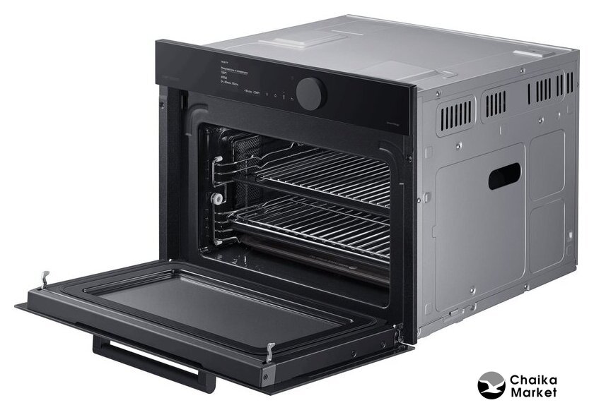 электрический с конвекцией, объем 63 л, 12 режимов, автопрограммы, очистка пиролитическая + паровая, 4 стекла в дверце, направляющие проволочные + телескопические (2 уровня)
