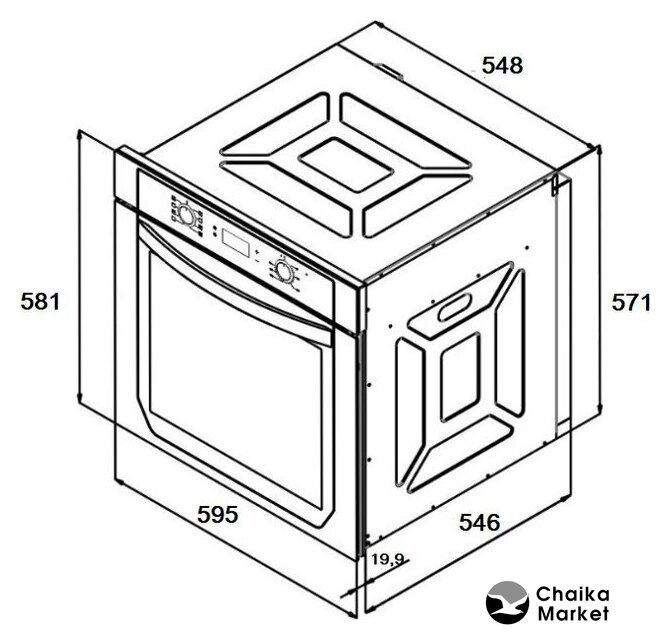 электрический с конвекцией, объем 58 л, 9 режимов, очистка ручная, проволочные направляющие, энергопотребление A