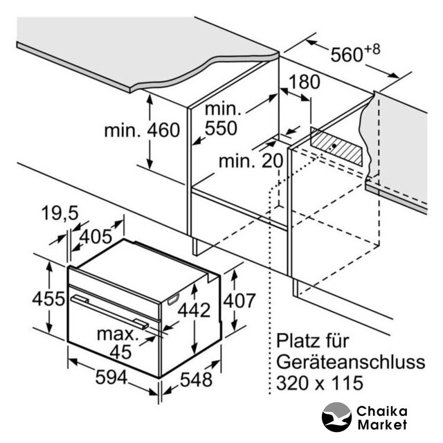 электрический с конвекцией, объем 68 л, 16 режимов, очистка паровая, 3 стекла в дверце, направляющие проволочные + телескопические (1 уровень)