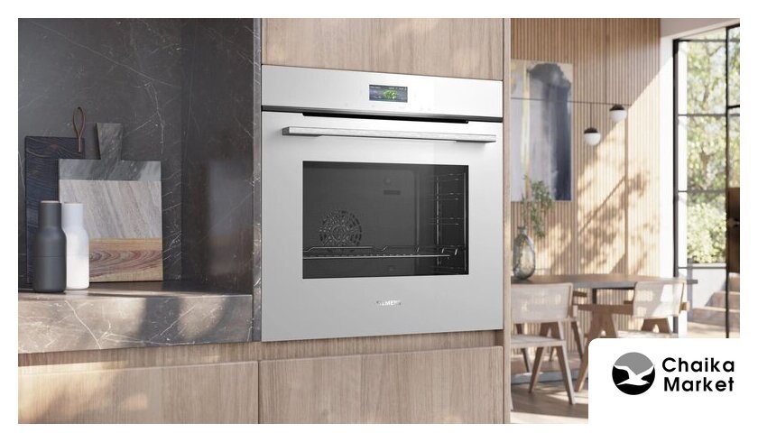 электрический с конвекцией, объем 70 л, 12 режимов, автопрограммы, очистка паровая, 3 стекла в дверце, направляющие проволочные + телескопические (1 уровень)