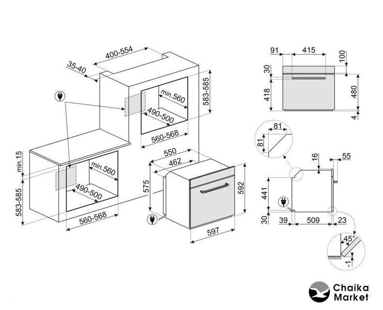 электрический с конвекцией, объем 65 л, 6 режимов, очистка паровая