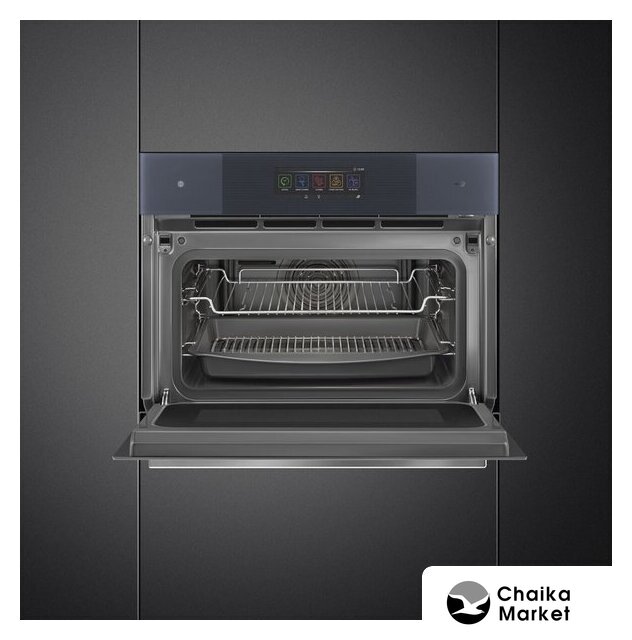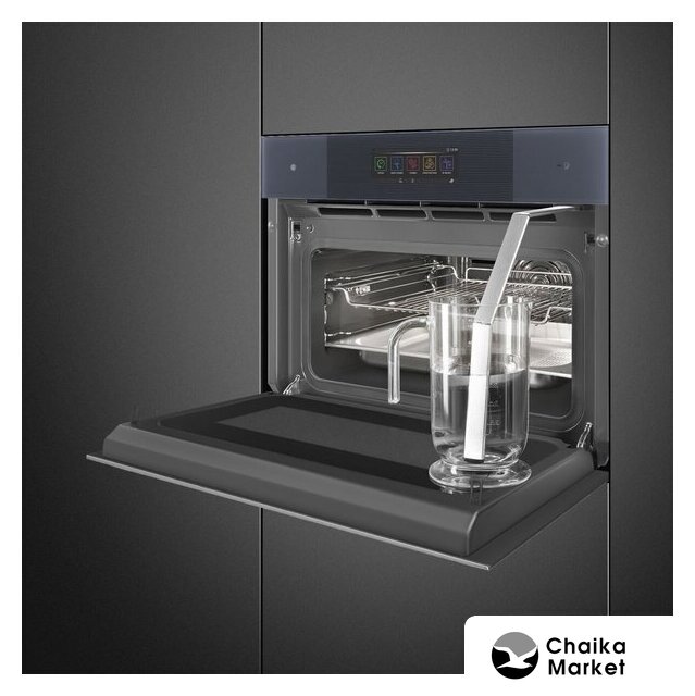 электрический с конвекцией, микроволны, приготовление на пару, объем 68 л, 26 режимов, автопрограммы, очистка паровая, 4 стекла в дверце, направляющие проволочные + телескопические (1 уровень), термощуп