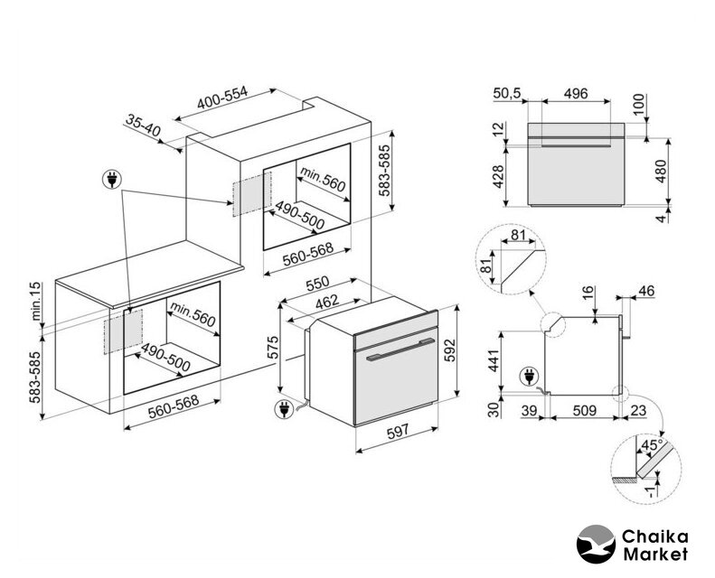 | Режимы работы | нижний нагрев, двухсторонний нагрев, большой гриль, вентиляционный нагрев, гриль + конвекция, нижний + вентиляционный нагрев, двухсторонний нагрев + конвекция, двухсторонний + вентиляционный нагрев (3D), размораживание, поддержание температуры (подогрев), предварительный разогрев духовки, подогрев посуды, подготовка теста |
