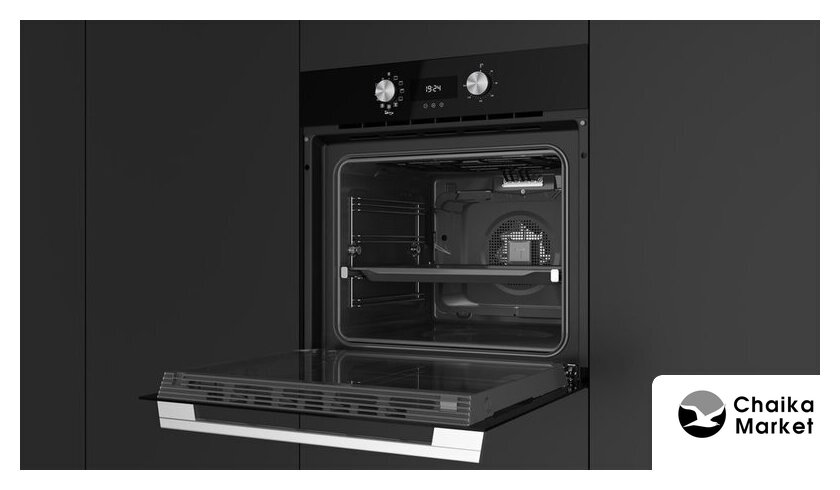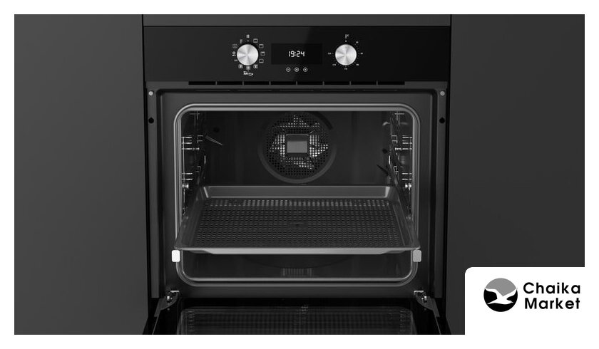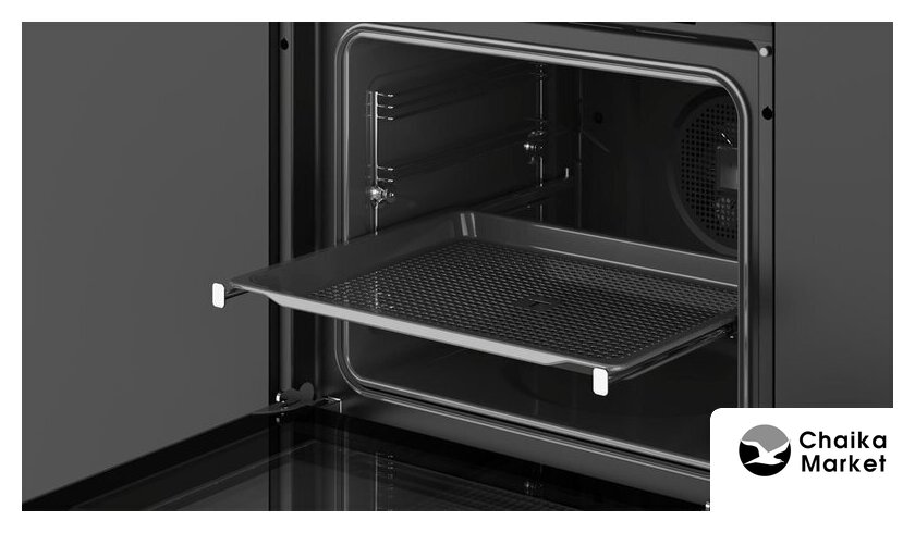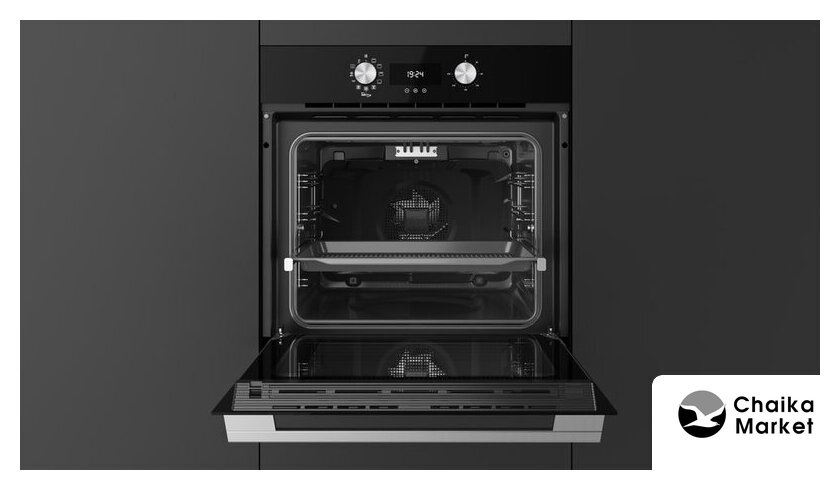 электрический с конвекцией, объем 47 л, утапливаемые переключатели, 5 режимов, очистка каталитическая + паровая, 2 стекла в дверце, направляющие проволочные + телескопические