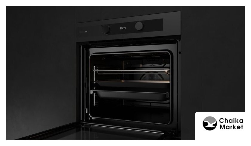 электрический с конвекцией, объем 71 л, 11 режимов, очистка каталитическая + паровая, 3 стекла в дверце, направляющие проволочные, термощуп