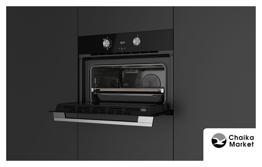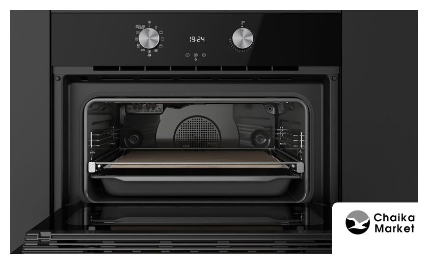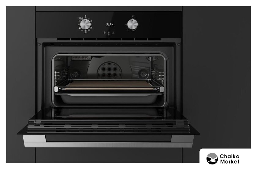 электрический с конвекцией, приготовление на пару, объем 76 л, 13 режимов, автопрограммы, очистка каталитическая + паровая, 2 стекла в дверце, направляющие проволочные + телескопические (1 уровень)