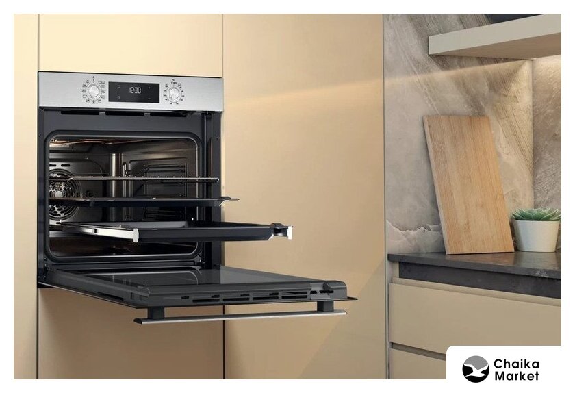 электрический с конвекцией, объем 47 л, утапливаемые переключатели, 9 режимов, очистка паровая, 3 стекла в дверце, направляющие проволочные + телескопические (1 уровень)