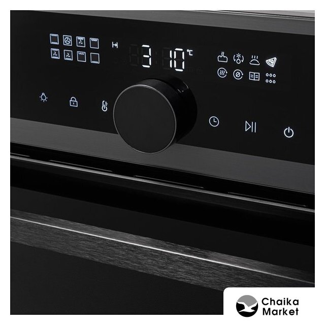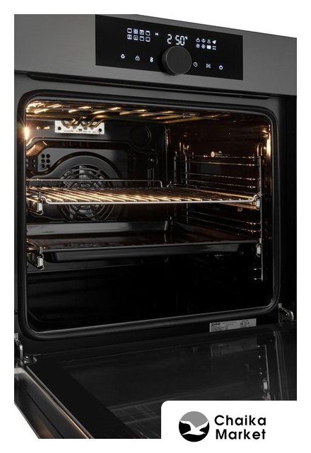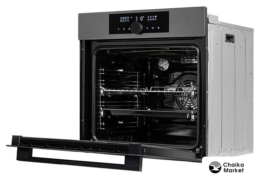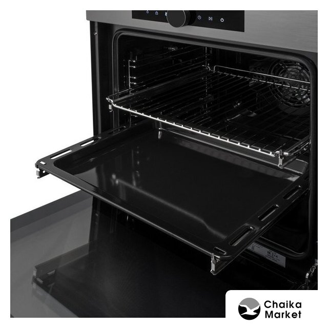 электрический с конвекцией, объем 77 л, утапливаемые переключатели, 10 режимов, очистка паровая, 2 стекла в дверце, направляющие проволочные