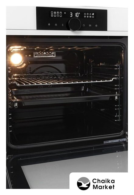 электрический с конвекцией, объем 76 л, 9 режимов, очистка паровая, 3 стекла в дверце, направляющие проволочные + телескопические (2 уровня)