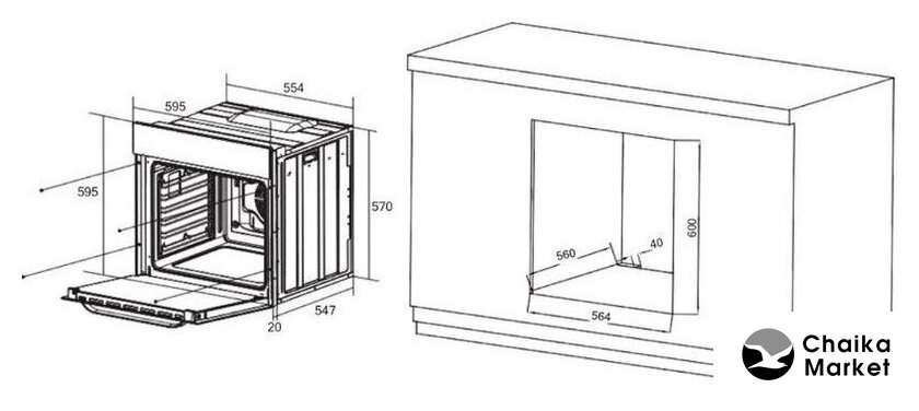 электрический с конвекцией, объем 60 л, утапливаемые переключатели, 6 режимов, очистка паровая, направляющие проволочные