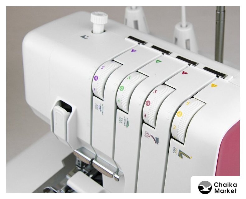 оверлок; рабочих нитей: 2, 3, 4; максимальная длина строчки: 4 мм; регулировка давления лапки
