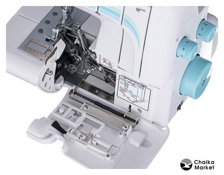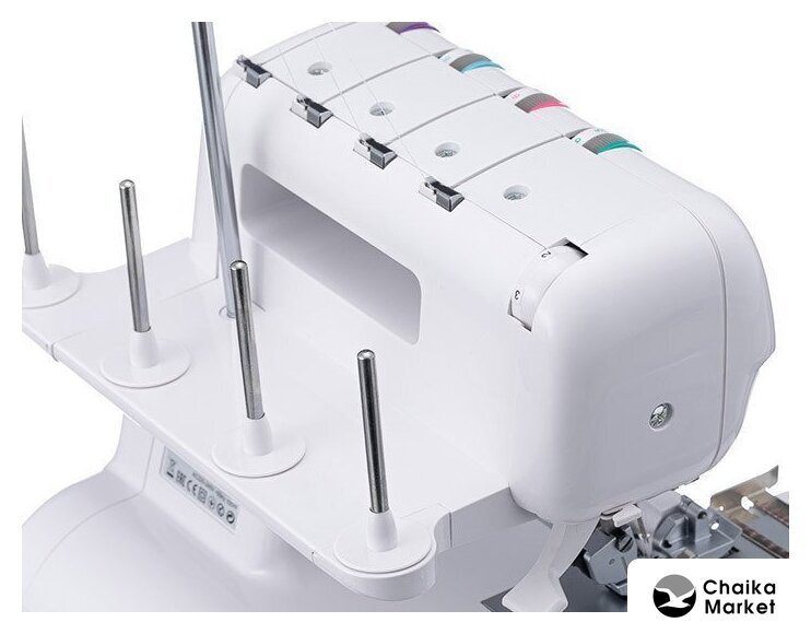 оверлок; рабочих нитей: 2, 3, 4; максимальная ширина строчки: 8 мм; максимальная длина строчки: 4 мм; регулировка давления лапки; скорость шитья: 1300 об/мин