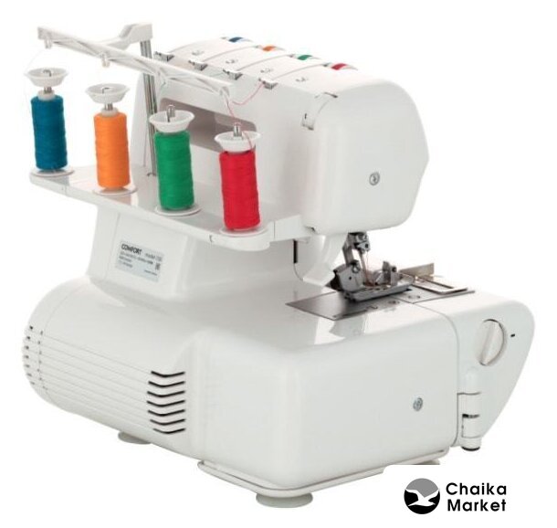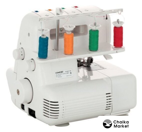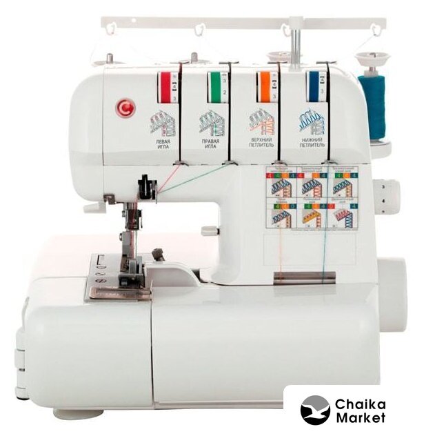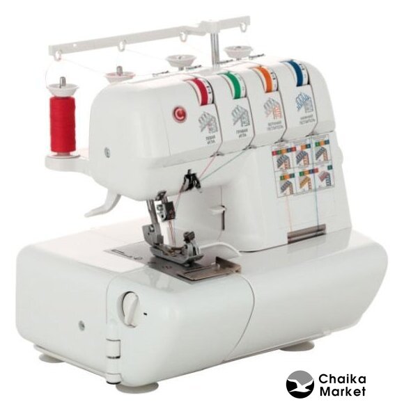 оверлок; рабочих нитей: 2, 3, 4; максимальная ширина строчки: 8 мм; максимальная длина строчки: 4 мм; регулировка давления лапки; скорость шитья: 1300 об/мин