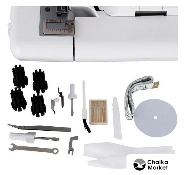 оверлок; рабочих нитей: 2, 3, 4; максимальная ширина строчки: 7 мм; максимальная длина строчки: 5 мм; регулировка давления лапки; скорость шитья: 1300 об/мин