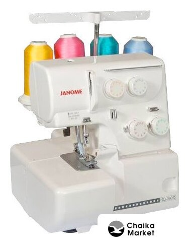 оверлок, рабочих нитей: 3, 4, нитей для плоского шва: 3, максимальная ширина строчки: 7 мм, максимальная длина строчки: 4 мм, регулировка давления лапки, скорость шитья: 1300 об/мин