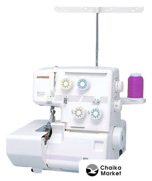 оверлок, рабочих нитей: 3, 4, нитей для плоского шва: 3, максимальная ширина строчки: 7 мм, максимальная длина строчки: 4 мм, регулировка давления лапки, скорость шитья: 1300 об/мин
