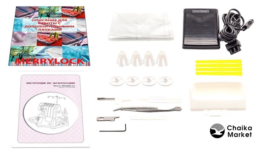 оверлок; рабочих нитей: 3, 4; максимальная ширина строчки: 5 мм; максимальная длина строчки: 5 мм; регулировка давления лапки; скорость шитья: 1300 об/мин