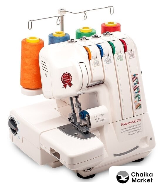 оверлок; рабочих нитей: 3, 4; максимальная ширина строчки: 6 мм; максимальная длина строчки: 4 мм; регулировка давления лапки