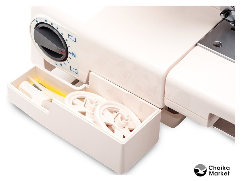 оверлок; рабочих нитей: 3, 4; максимальная ширина строчки: 7 мм; максимальная длина строчки: 5 мм; регулировка давления лапки