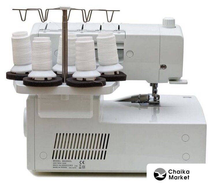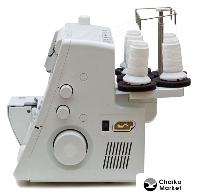 оверлок; рабочих нитей: 2, 4, 5; максимальная ширина строчки: 9 мм; максимальная длина строчки: 5 мм; регулировка давления лапки; скорость шитья: 1300 об/мин