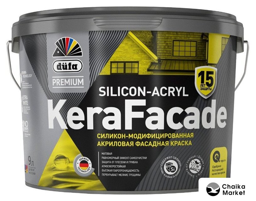 акрилатная для внутренних работ/для наружных работ, для фасадов/для деревянных изделий, цвет белый, степень блеска - полуматовая, 9 л