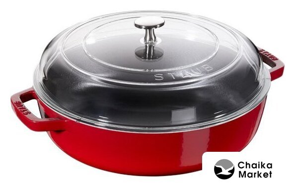 сотейник, чугун, 28 см, стеклянная крышка, чугунная ручка