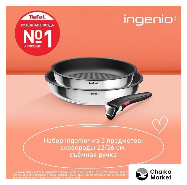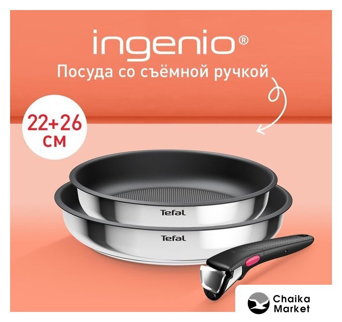| Состав набора | две сковороды диаметром 22 и 26 см |
