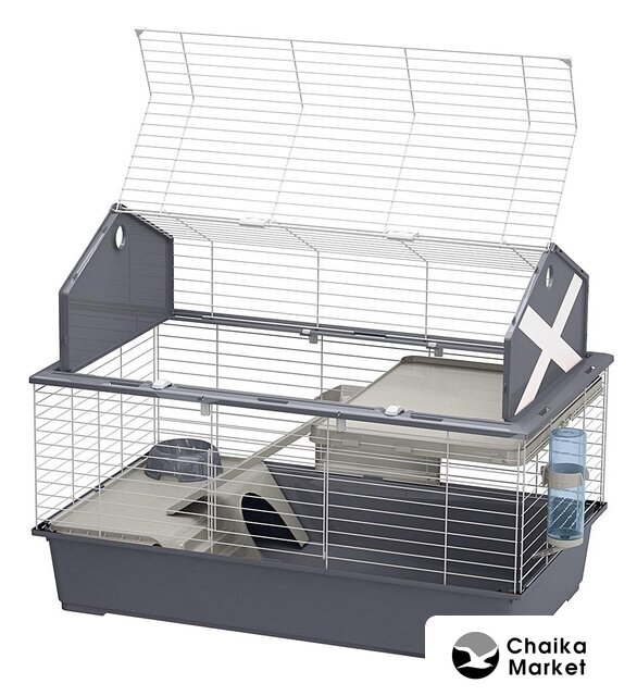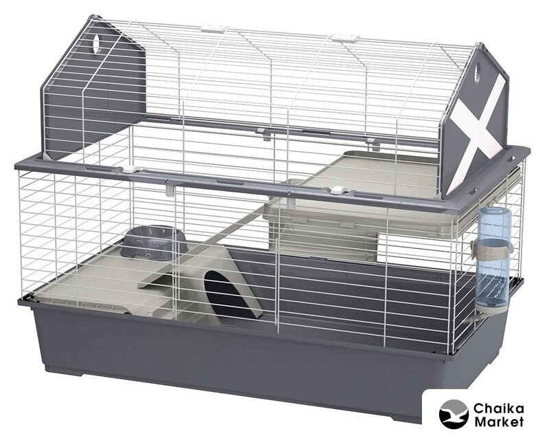 клетка, для грызунов (кролик), пластик/эмалированная сталь, серый