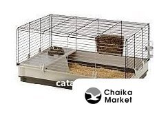 клетка, для грызунов (кролик), пластик/эмалированная сталь, серый