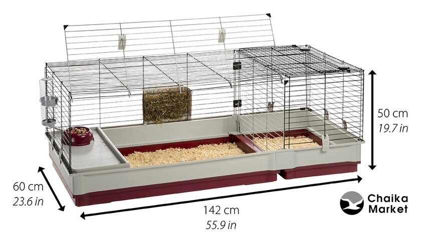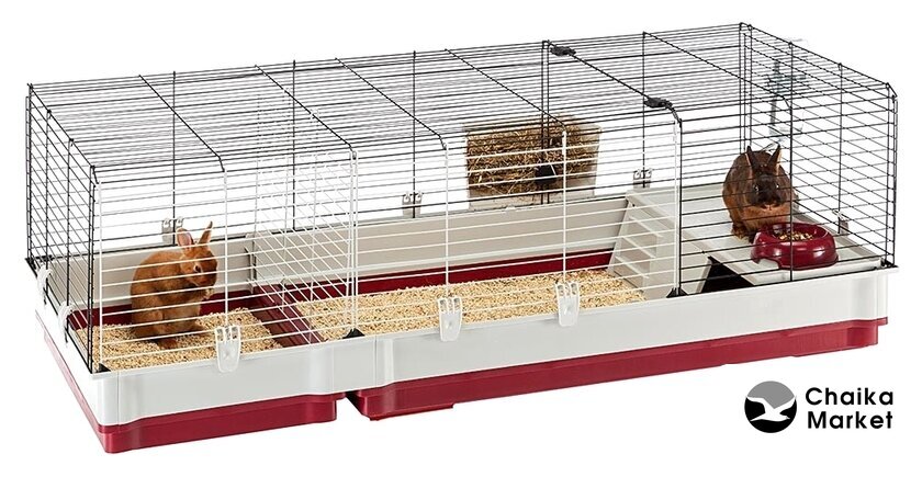 клетка, для грызунов (кролик), пластик/эмалированная сталь, серый
