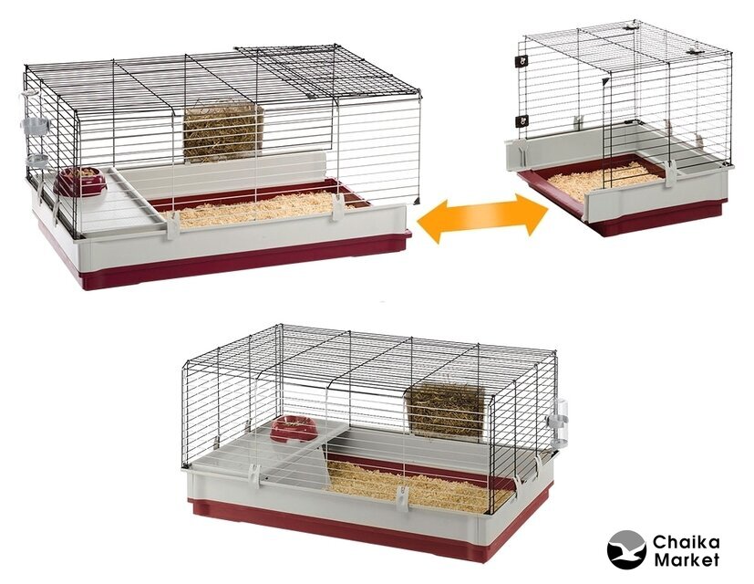 Комплектация | домик, кормушка/миска, лесенка/горка, поилка, полка |