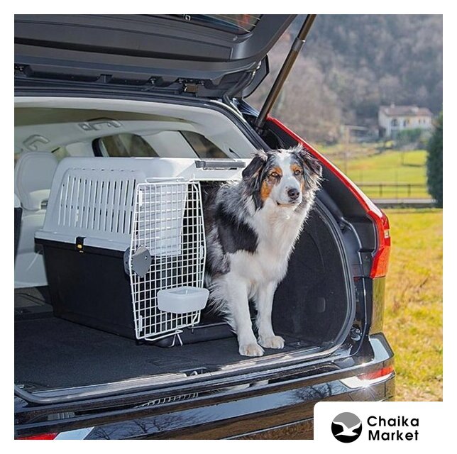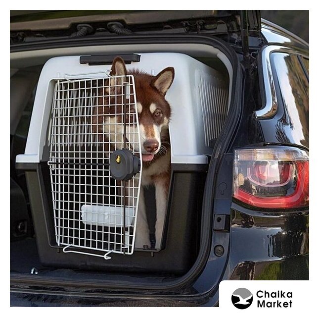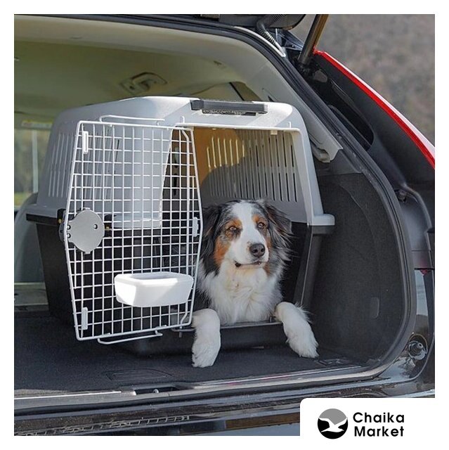 переноска, для собак, пластик, максимальный вес питомца: 55 кг, темно-серый/темно-синий