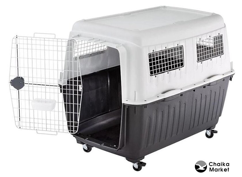переноска, для кошек, для собак, пластик, максимальный вес питомца: 50 кг, белый/синий