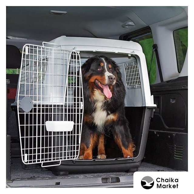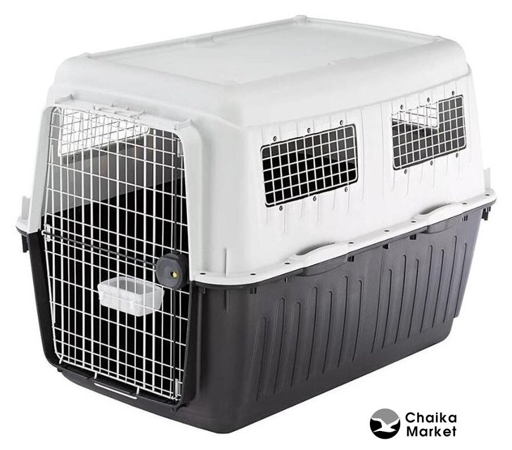 переноска, для собак, пластик, максимальный вес питомца: 55 кг, темно-серый/темно-синий