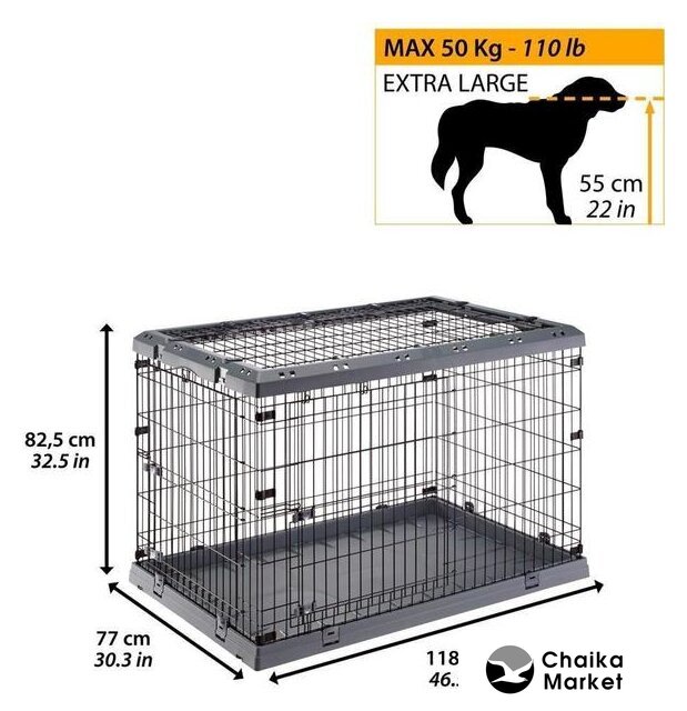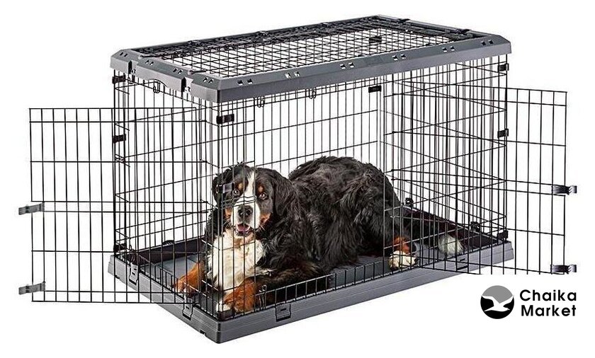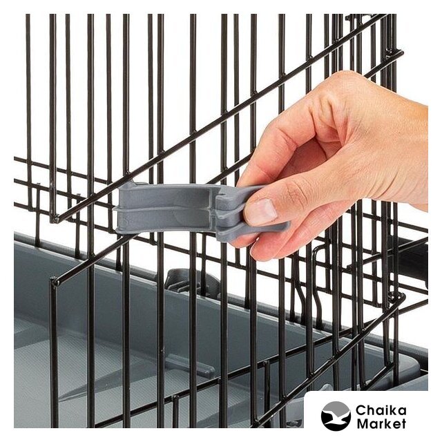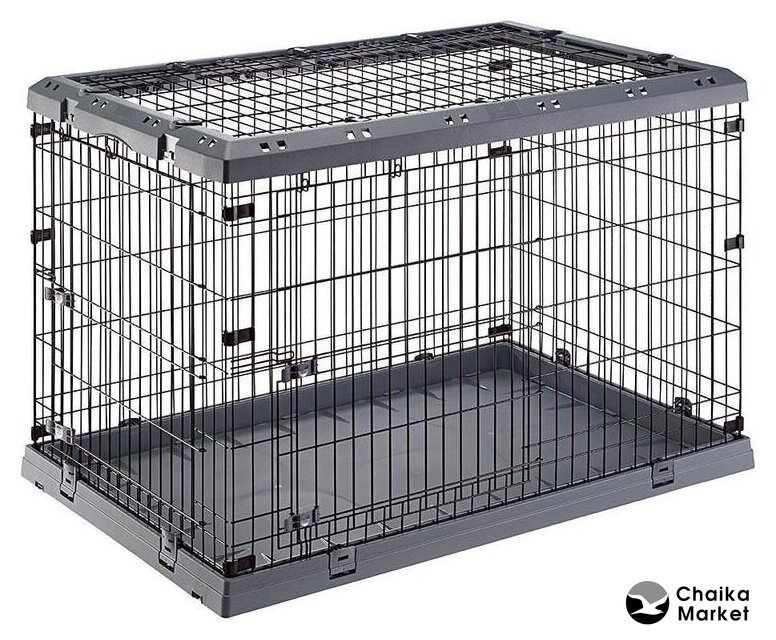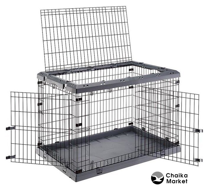 клетка, для собак, напольное размещение, пластик/металл, серебристый/черный