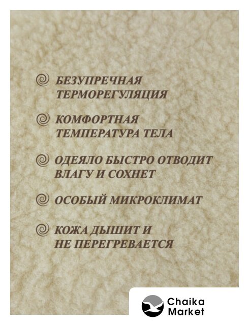 одеяло (172x205 см), наполнитель: овечья шерсть/полиэстер (полиэфир), чехол: тик